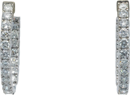 18k White Gold Round Cut Diamond Inside Out Oval Hoop Earrings 13.96CT