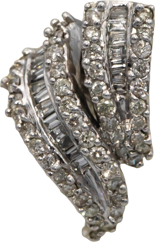 14k White Gold 1.0CT Round and Baguette Cut Diamond Ribbon Earrings
