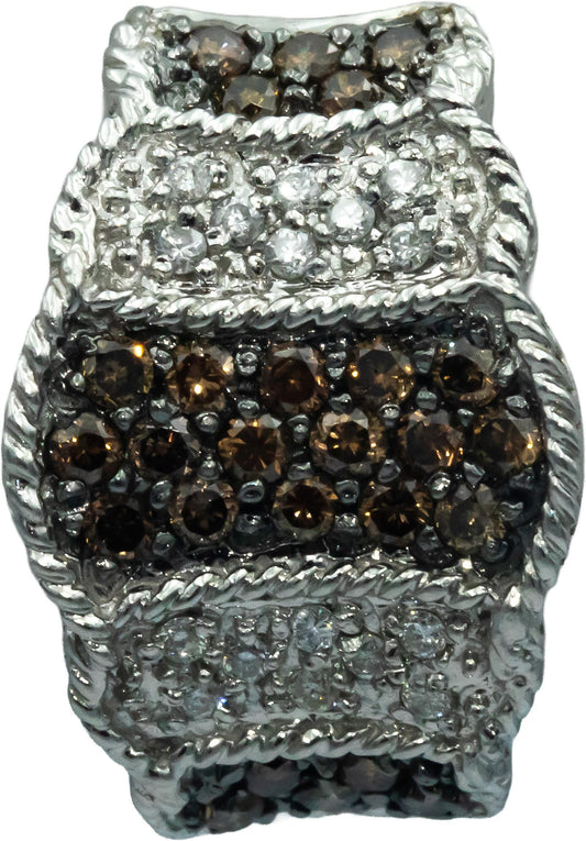 14k White Gold 1.25CT White and Brown Diamond Cluster Curved Earrings