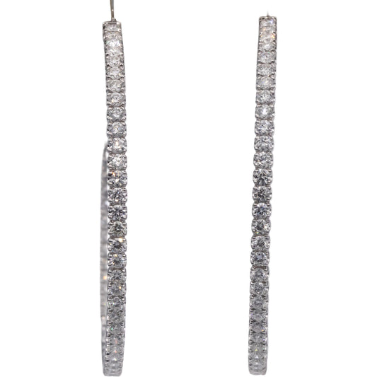 14k White Gold VS Round Diamond Inside Out Oval Hoop Earrings 2.0CTW