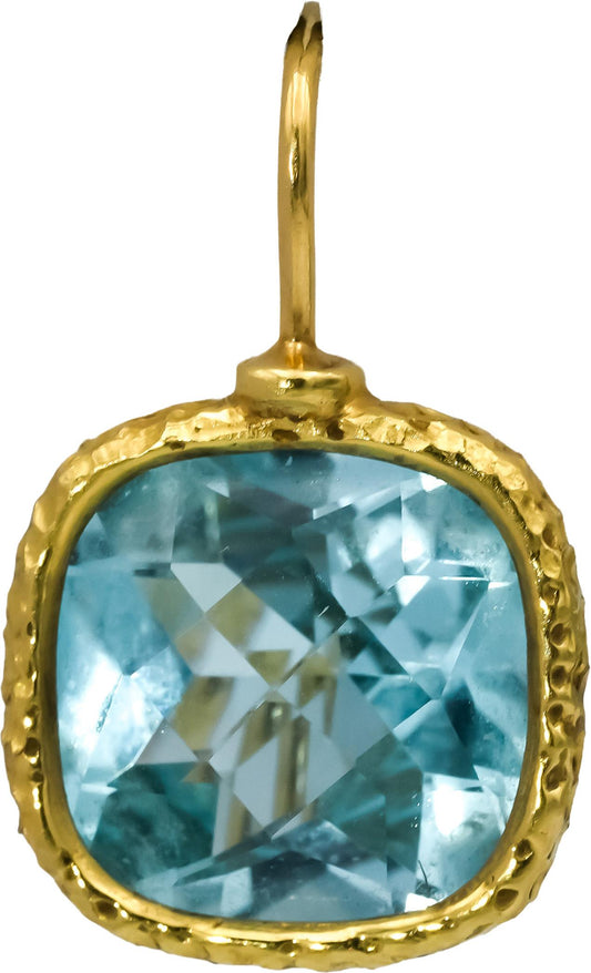 18k Yellow Gold Blue Topaz Hand Hammered Dangle Earrings 15.0CT