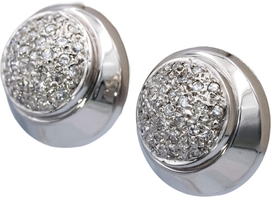14k White Gold Round Diamond Pave Cluster Button Clip-On Earrings 0.90CT
