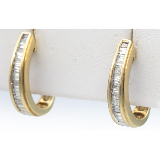 10k Yellow Gold Baguette Cut Diamond Curved Huggie Hoop Earrings 0.49CT