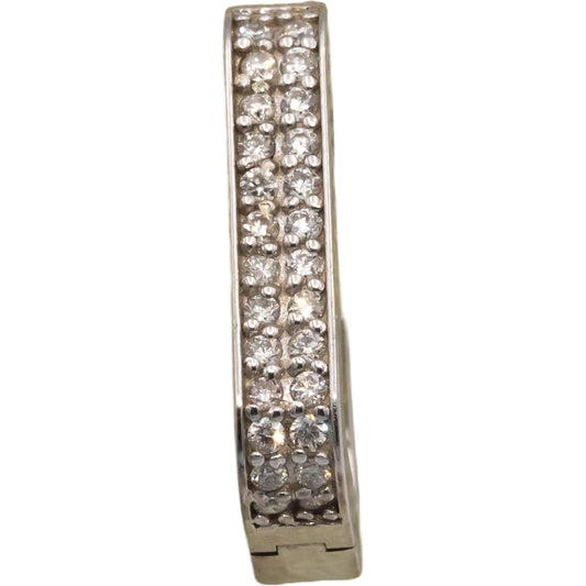 14k White Gold Round Diamond Rectangle Hoop Earrings 0.25CT