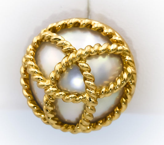 TIFFANY & CO. Vintage 18k Yellow Gold Mother of Pearl Clip On Earrings