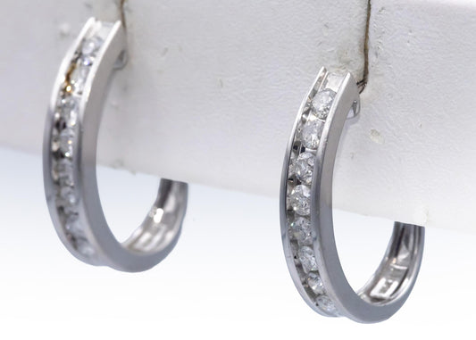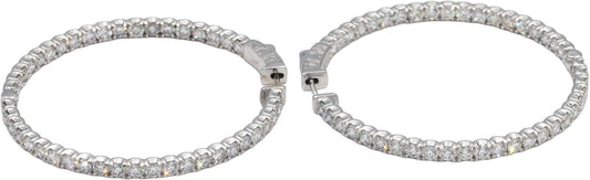 14k White Gold VS Round Diamond Inside Out Hoop Earrings 2.90CT