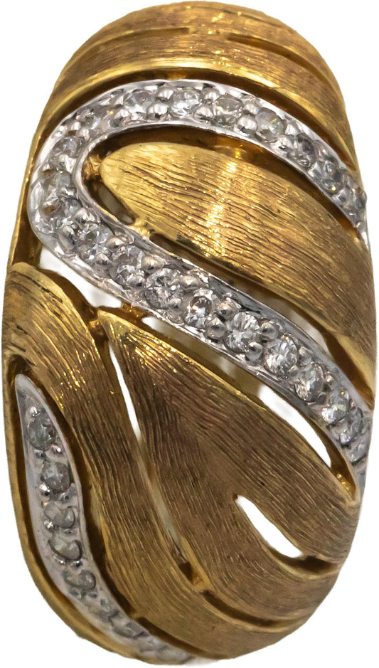 14k Yellow & White Gold Round Diamond Florentine Curved Earrings 0.50CT