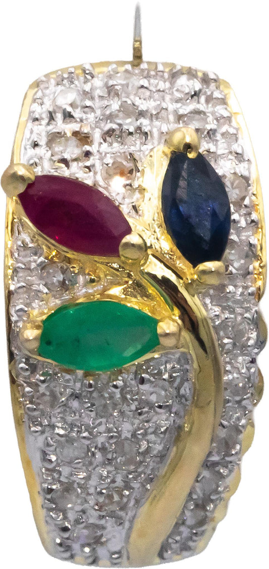 14k Yellow & White Gold Diamond Emerald Ruby Sapphire Floral Earrings 0.90CTW
