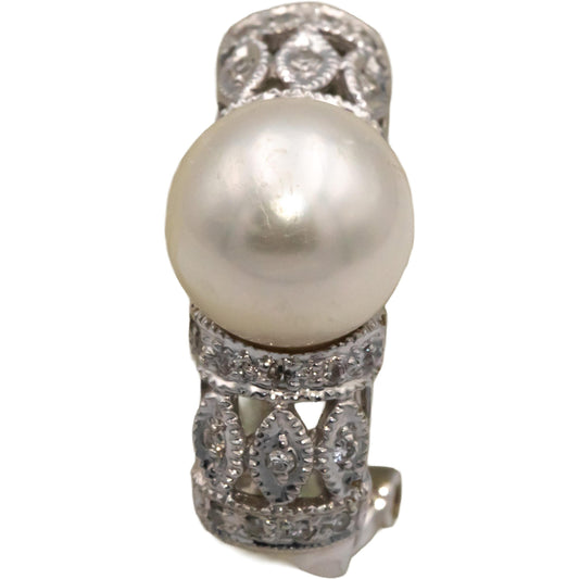 18k White Gold Round Diamond and Pearl Curved Earrings 0.21CT