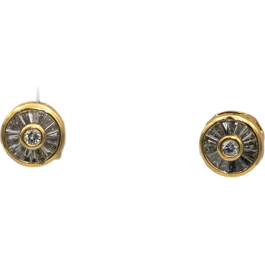14k Yellow Gold Round & Baguette Cut Diamond Stud Earrings 0.75CT