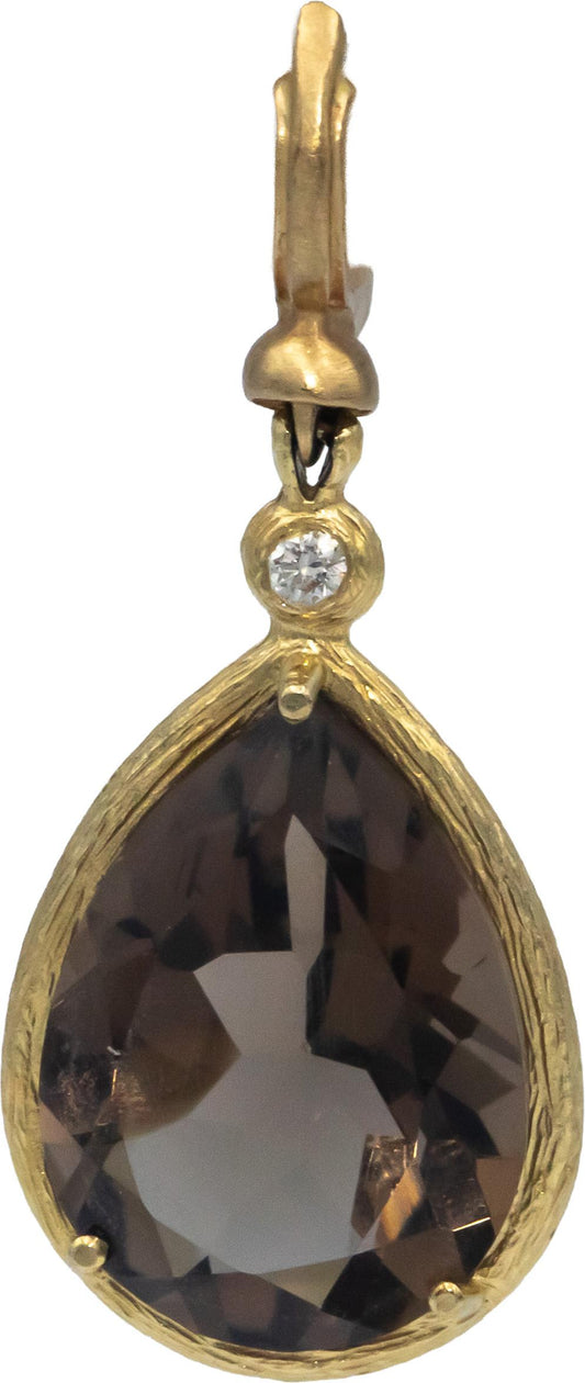 14k Yellow Gold VS Diamond and Smokey Quartz Drop Dangle Earrings 0.07CT