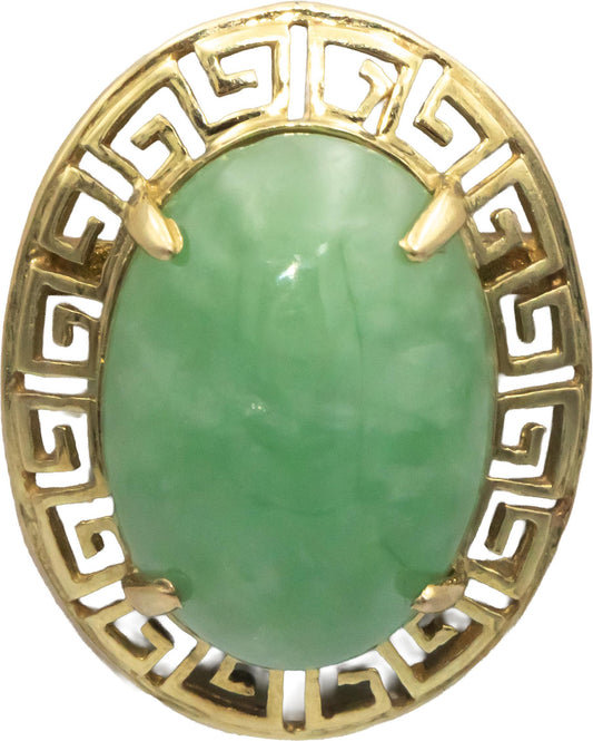 14k Yellow Gold Cabochon Cut Jade Greek Key Stud Earrings 8.0CT