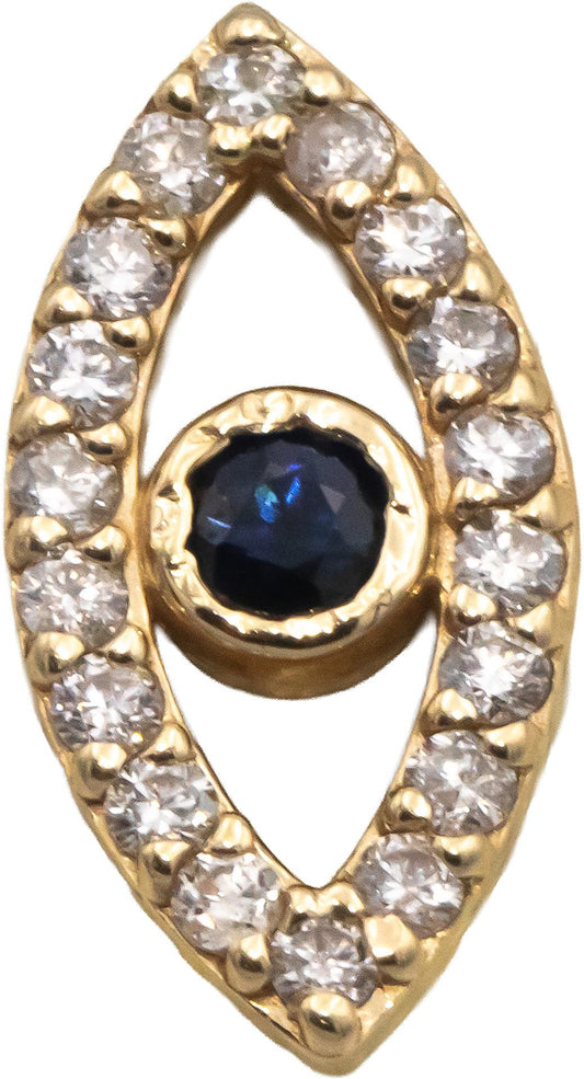 14k Yellow Gold Round Diamond and Sapphire Evil Eye Stud Earrings 0.73CTW