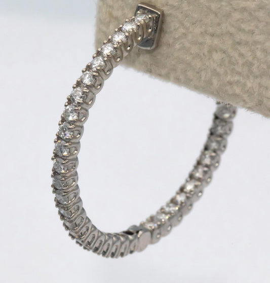 14k White Gold Diamond Inside Out Hoop Earrings 1.50CT
