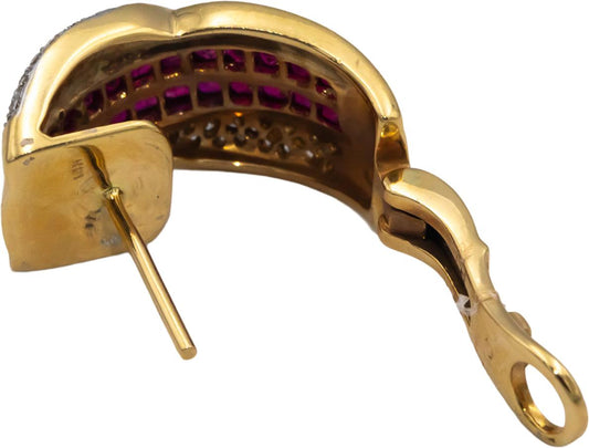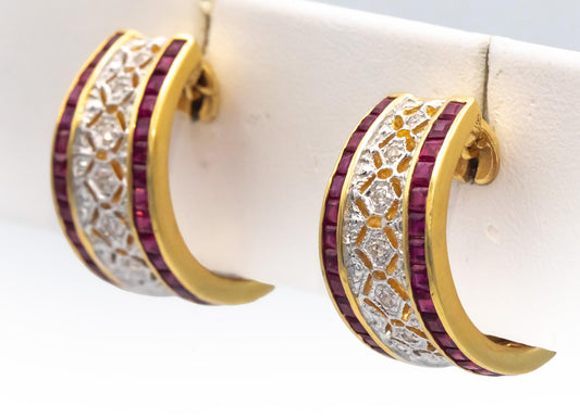 18k Yellow & White Gold 1.60CT Diamond and Ruby Curved Earrings