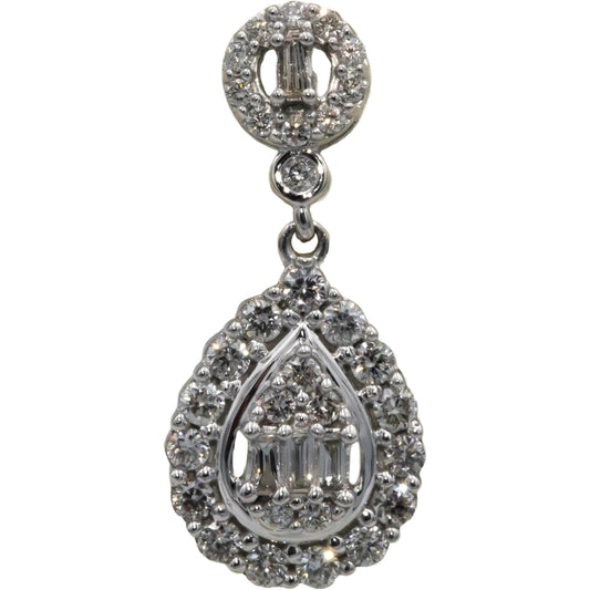 10k White Gold Round and Baguette Cut Diamond Drop Dangle Cluster Earrings 1.0CT