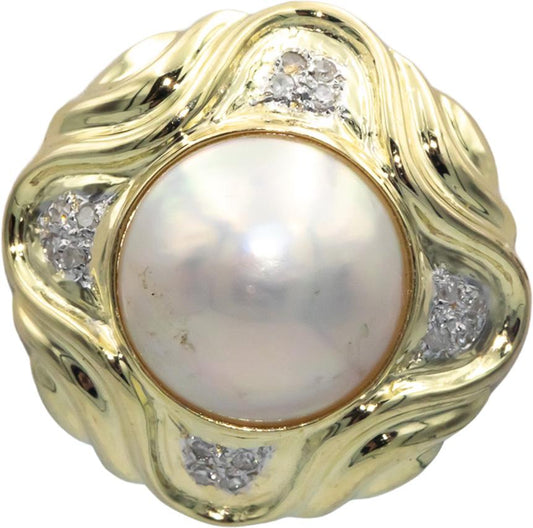 14k Yellow Gold Diamond and 12mm Mabe Pearl Earrings 0.15CT