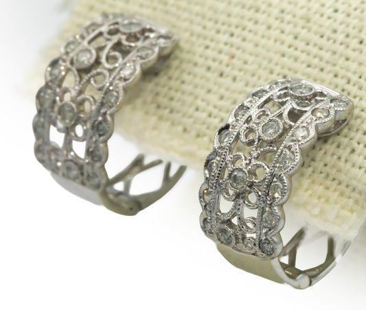 14k White Gold Round Diamond Filigree Hoop Earrings 0.45CT