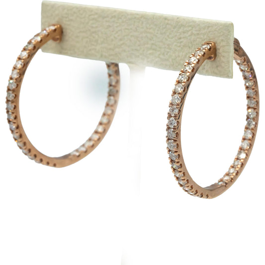 10k Rose Gold Round Cut Diamond Inside Out Hoop Earrings 5.0CT