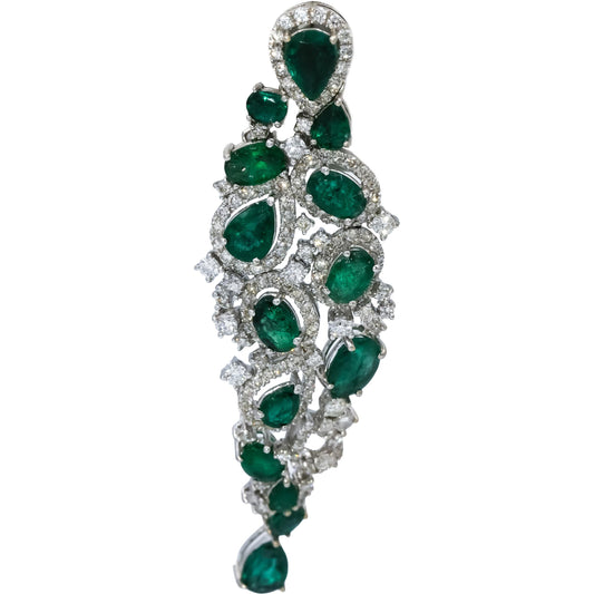18k White Gold Emerald and Diamond Drop Dangle Earrings 10.0CTW