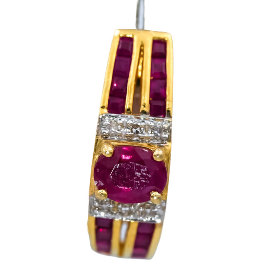 14k Yellow Gold Diamond and Ruby Curved Earrings 0.85CTW