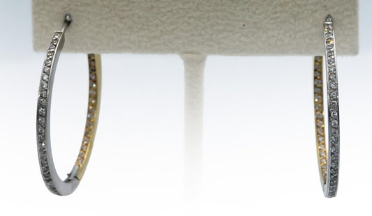 14k Yellow and White Gold Round Diamond Inside Out Hoop Earrings 1.0CT