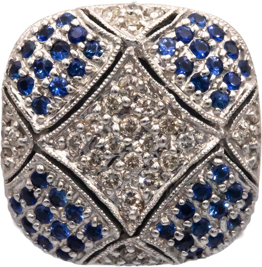 14k White Gold 1.65CT Diamond and Blue Sapphire Cluster Earrings