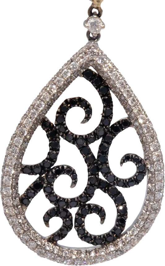 18k White Gold 2.0CT White and Black Diamond Drop Dangle Earrings
