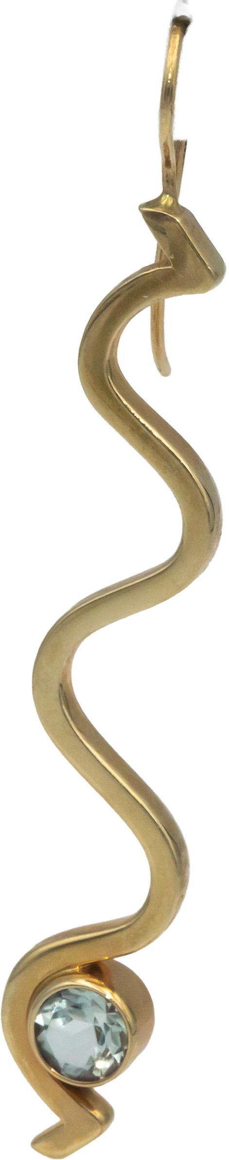 Designer Signed 14k Yellow Gold 1.10CT Round Cut Aquamarine Wavy Drop Earrings