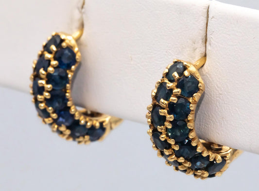 14k Yellow Gold 3.50CT Blue Sapphire Hoop Huggie Earrings