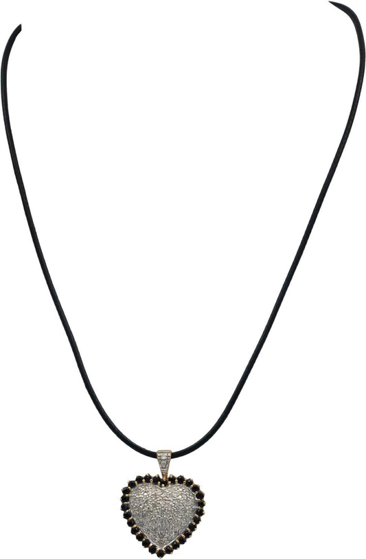 14k White Gold White and Black Diamond Cluster Heart Pendant Necklace 1.90CT