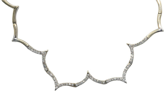 18k White Gold Round Diamond Wavy Fancy Link Necklace 0.70CT