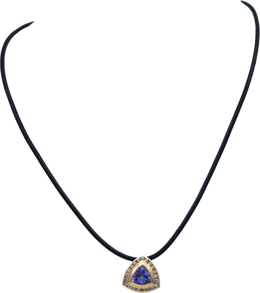 14k Yellow Gold Jewelry 1.80CT Diamond and Tanzanite Pendant Necklace