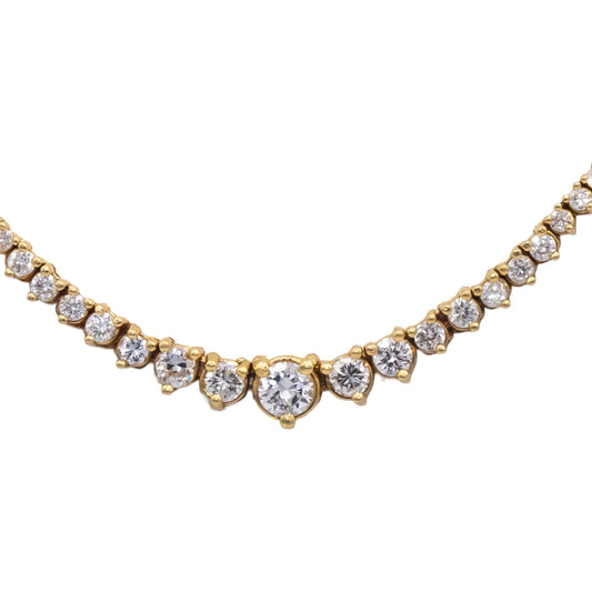 18k Yellow Gold Round Diamond Graduated Width Riviera Necklace 4.32CT
