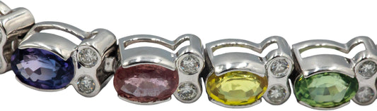 Estate 14k White Gold Rainbow Sapphire and Diamond Tennis Bracelet 11.35CT