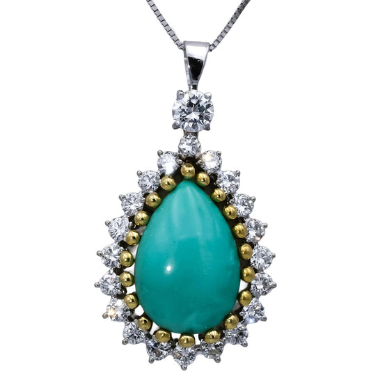 14k White & Yellow Gold VS Diamond Turquoise Statement Pendant Necklace 2.01CT