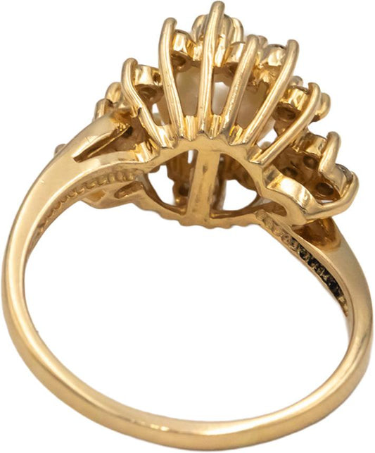 14k Yellow Gold Round Diamond & 8mm Pearl Cocktail Ring Size 9.5