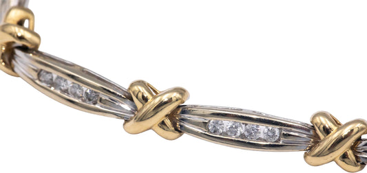 14k White & Yellow Gold 1.0CT Round Cut Diamond Fancy Link Bracelet