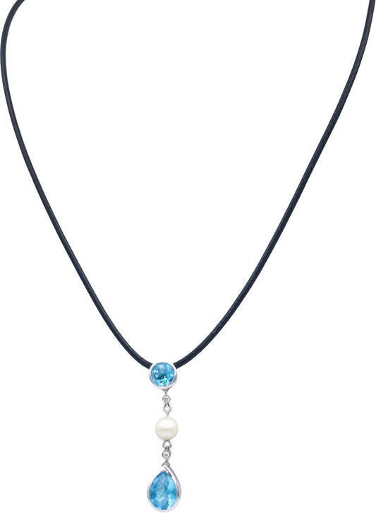 14k White Gold 2.02CT Diamond Blue Topaz 6mm Pearl Pendant Necklace