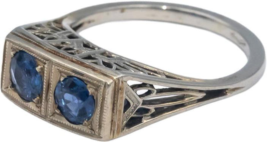 Vintage Antique 18k White Gold 0.55CT Blue Sapphire Filigree Ring Size 4