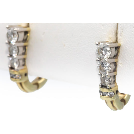 14k Yellow and White Gold 1.0CT Round Cut Diamond Earrings