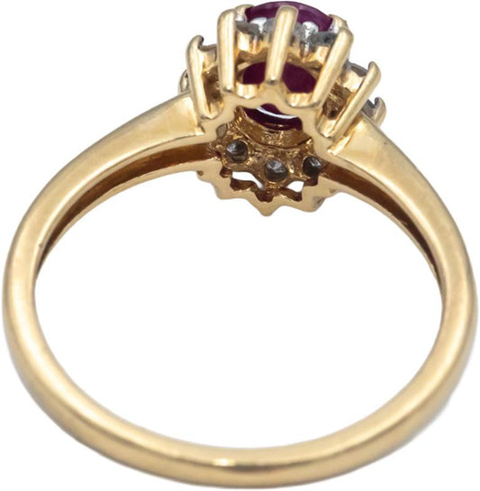 Oval Ruby and Round Diamond 14k Yellow Gold Halo Ring 1.0CT Size 6.75