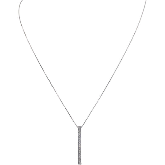 14k White Gold Jewelry 0.23CT Round Cut Diamond Bar Pendant Necklace
