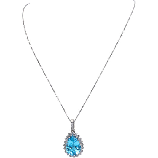 14k White Gold Jewelry 16.25CT Diamond and Blue Topaz Pendant Necklace Chain