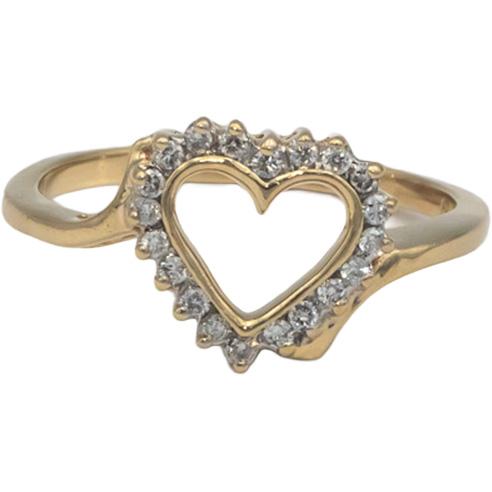 14k Yellow Gold 0.25CT Diamond Open Heart Ring Size 7