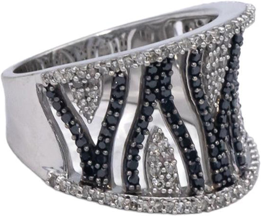 10k White Gold 0.50CT White and Black Diamond Wide Band Ring Size 7