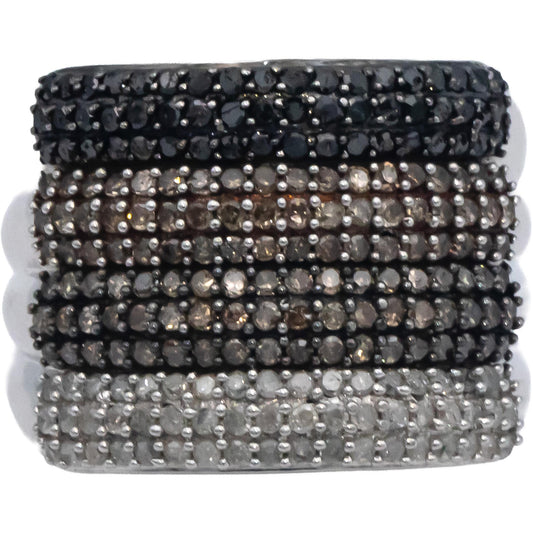 10k White Gold 1.10CT White Brown Black Diamond Wide Band Ring Size 7