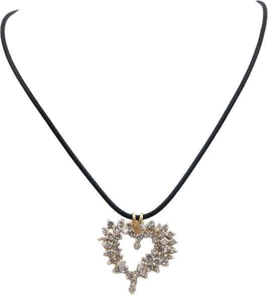 14k Yellow Gold 2.50CT Round Cut Diamond Cluster Heart Pendant Necklace