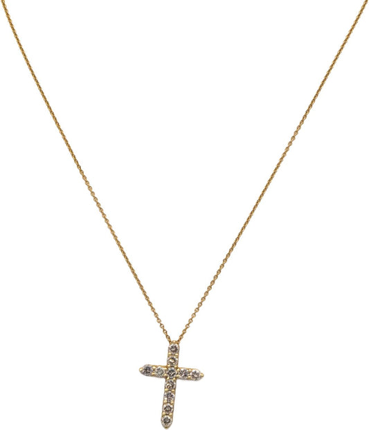 14k Yellow Gold 0.75CT VS Diamond Cross Crucifix Pendant Necklace