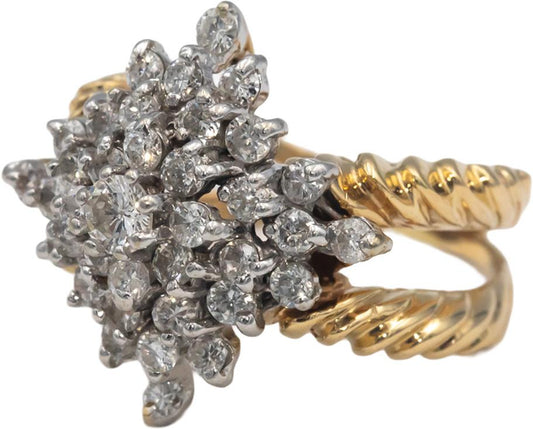 14k Yellow & White Gold 1.0CT Round Cut Diamond Cluster Ring Size 6.75